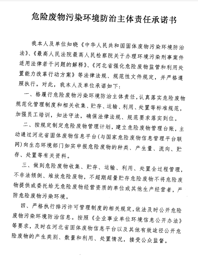 危險廢物污染環(huán)境防治主體責(zé)任承諾書