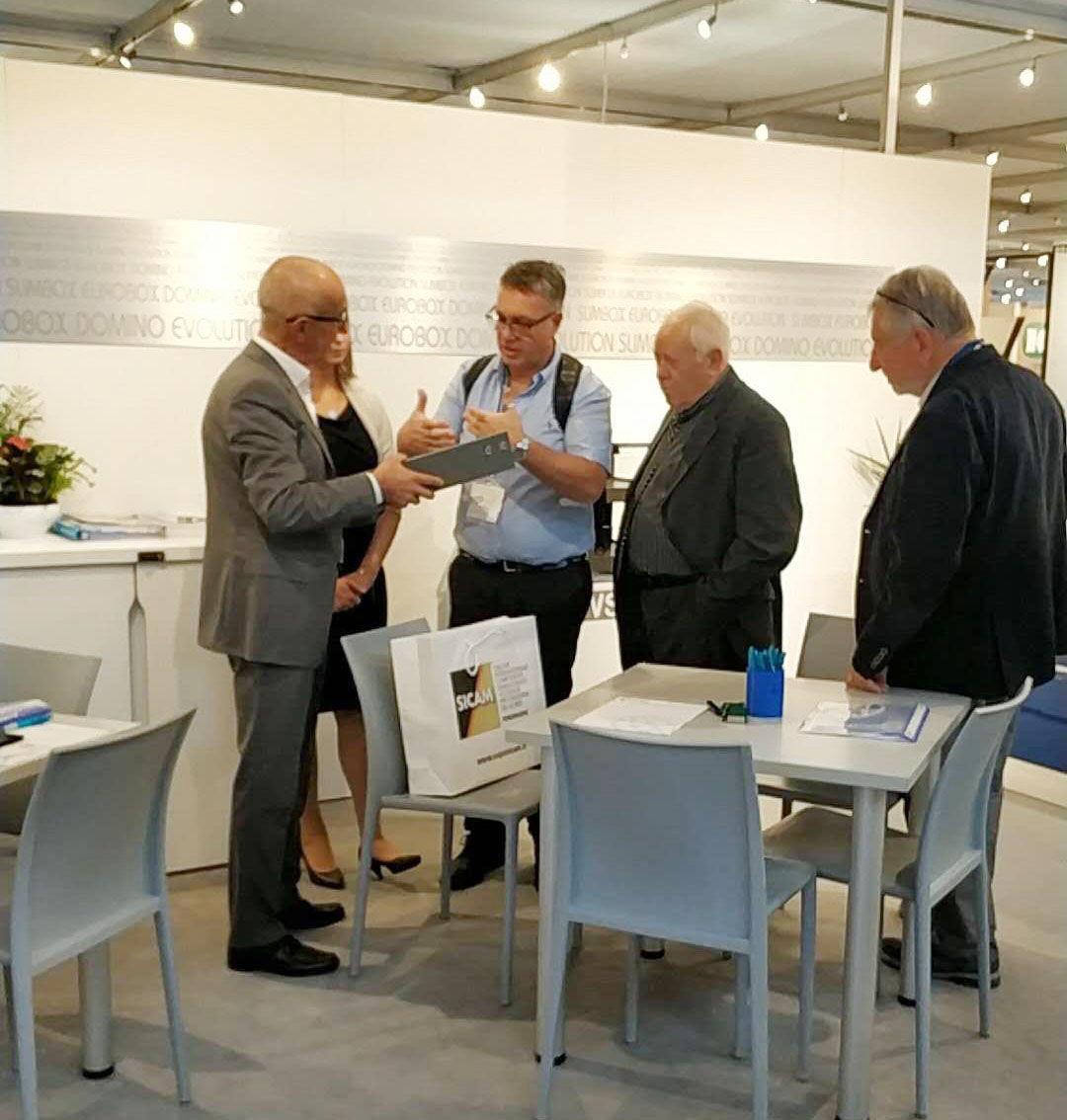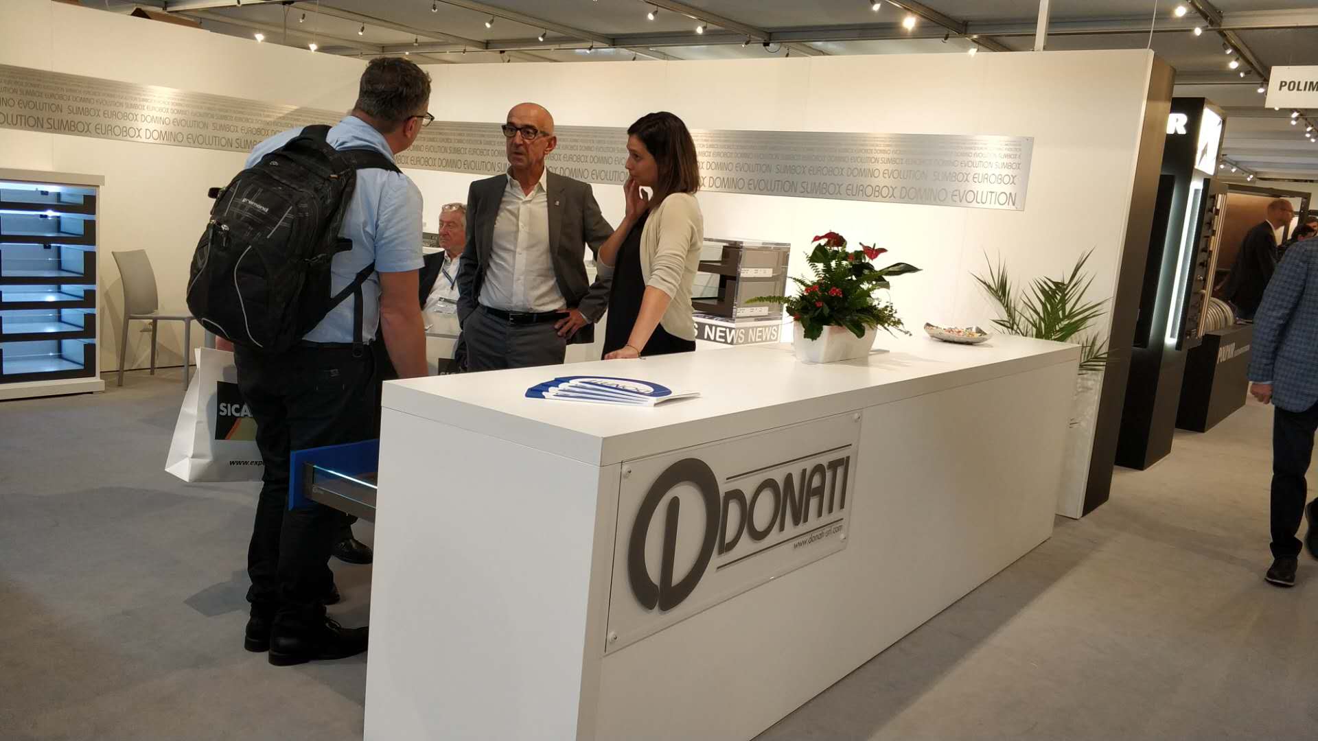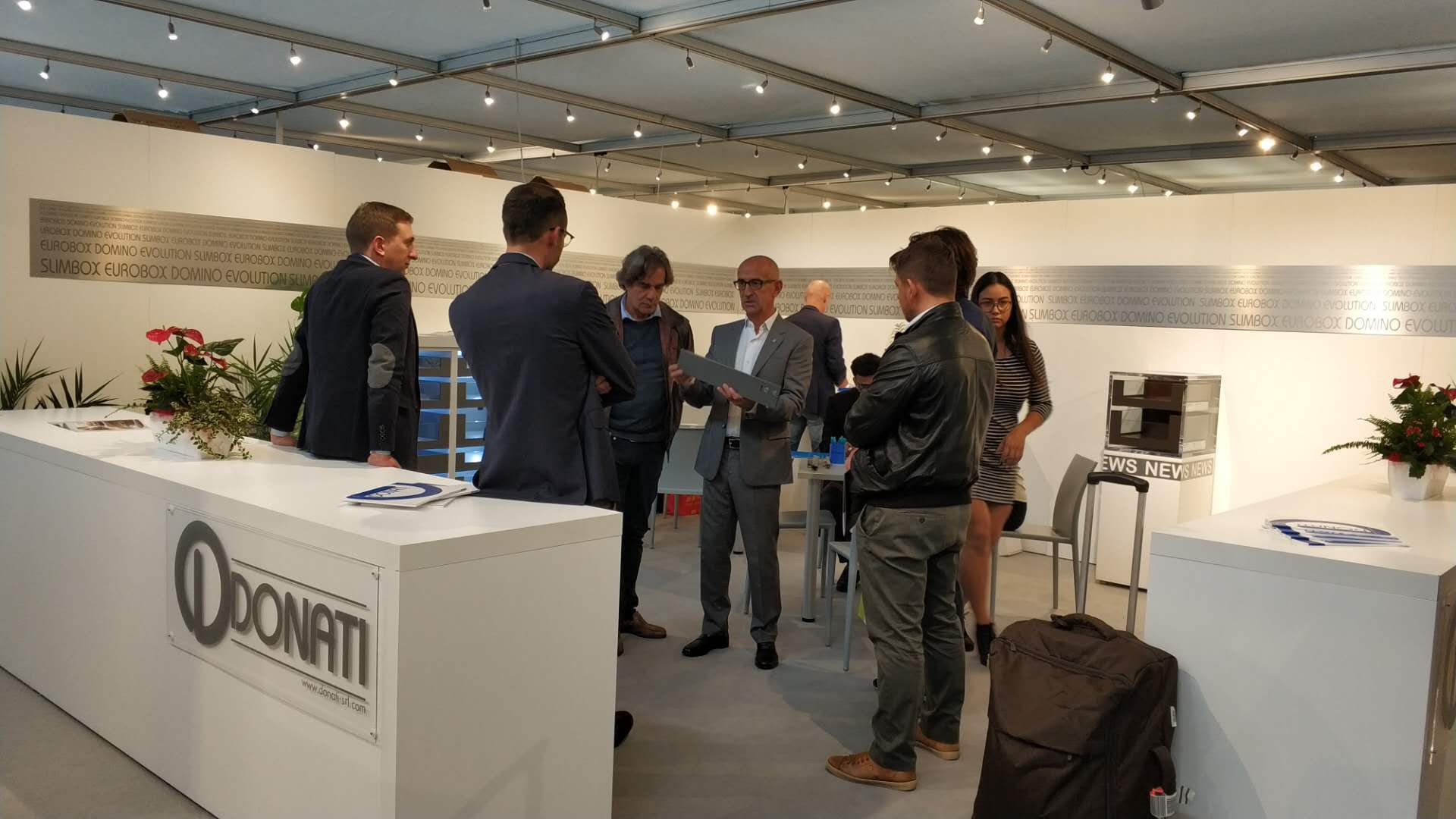 2018年10月16日,為期4天的意大利SICAM 秋季家具材料展會在威尼斯的博德諾內(nèi)召開,星徽子公司意大利DONATI以一系列歐洲先進(jìn)技術(shù)的產(chǎn)品線精彩亮相。展位以簡潔的白色搭配銀色點(diǎn)綴,整個展位時尚簡約,注重客戶體驗(yàn)的展廳設(shè)計(jì),讓客戶在每個不同角落,都可以體驗(yàn)到DONATI創(chuàng)新產(chǎn)品的真實(shí)感受。