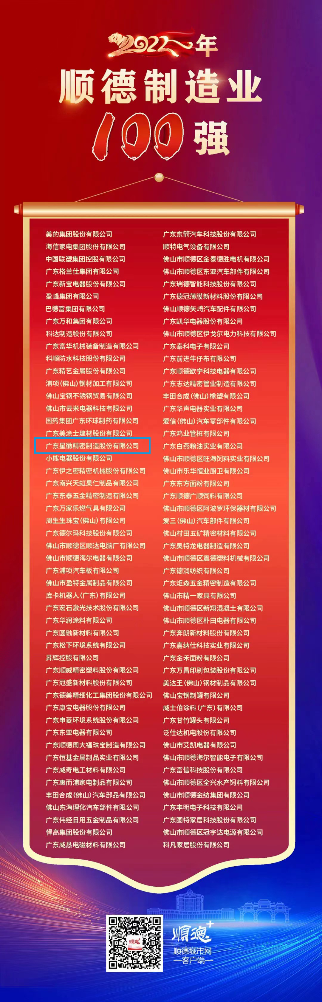 9月25日,“深耕順德,共享未來”順德區(qū)制造業(yè)百?gòu)?qiáng)發(fā)布會(huì)暨重大項(xiàng)目簽約活動(dòng)在順德舉行。活動(dòng)上,順德區(qū)首次發(fā)布了“2022年順德制造業(yè)100強(qiáng)”榜單并為代表企業(yè)授牌。憑借強(qiáng)勁的綜合實(shí)力和品牌影響力,星徽精密進(jìn)入前20強(qiáng),位列百?gòu)?qiáng)榜第十八,奪得家居五金行業(yè)桂冠。