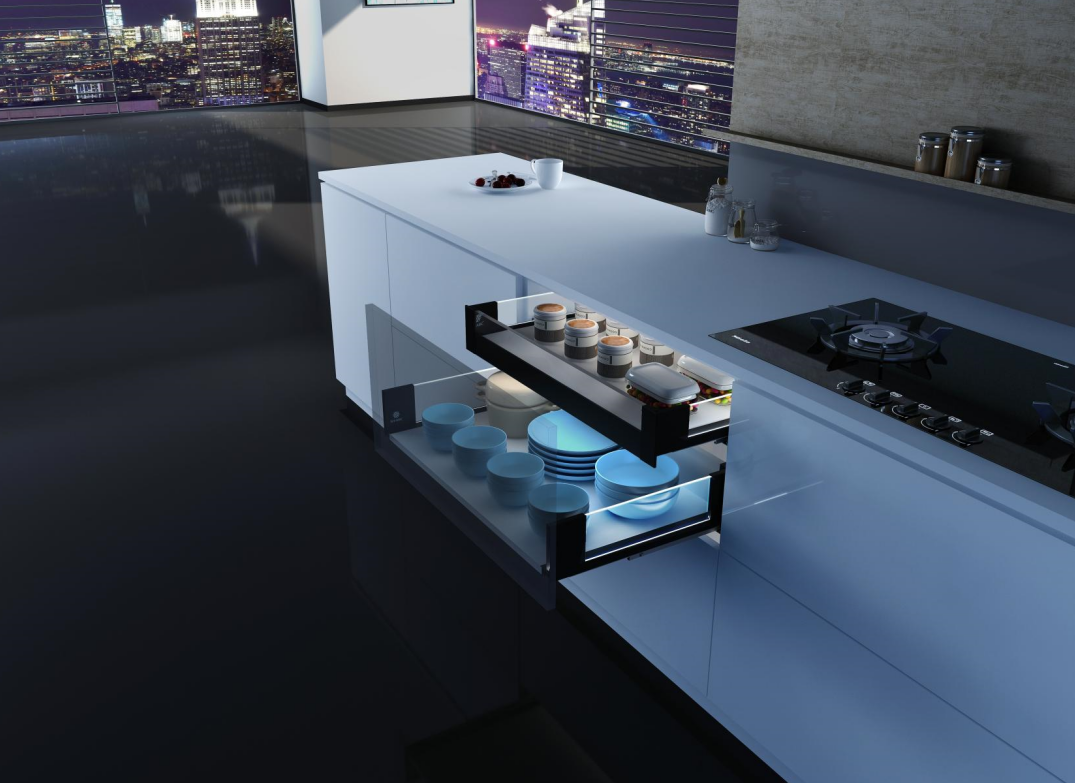 豪華燈光騎馬抽側(cè)板采用超薄鋼化玻璃+優(yōu)質(zhì)鋼材精制而成,美觀耐用;超敏紅外感應技術,拉開即使亮、關閉即暗;隱藏式靜音滑軌,三維六向調(diào)節(jié)。